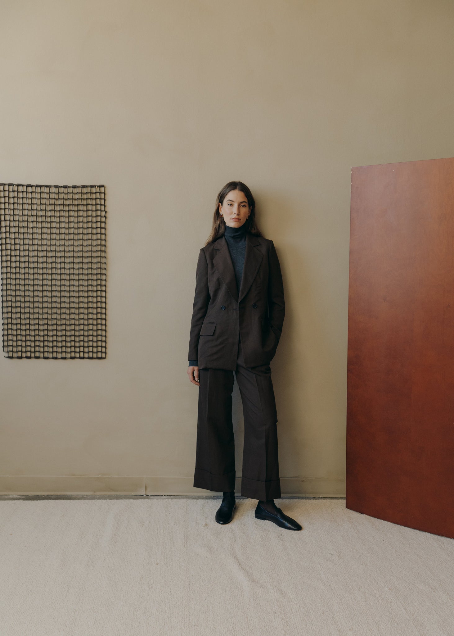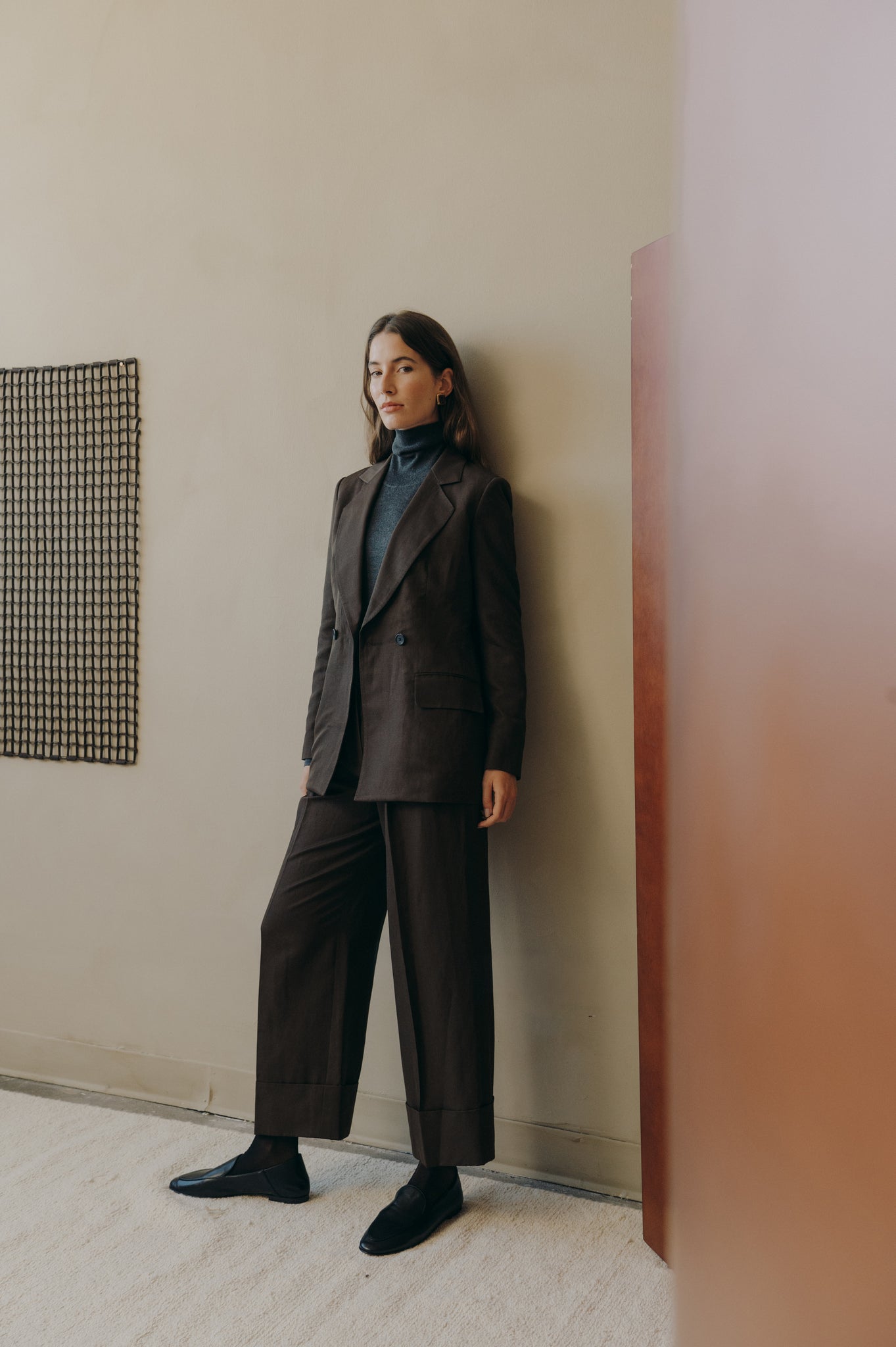 A classic, 2-button double-breasted jacket with a dropped notch lapel, full floating horsehair canvassing, and intricate hand-tailoring through the shoulders and body for optimal fit. Sleeves feature a signature functional, single-button hand-bound buttonhole. Hand Pick Stitching. No lining for a loftier, easier feel on the body. 100% washed Italian linen.