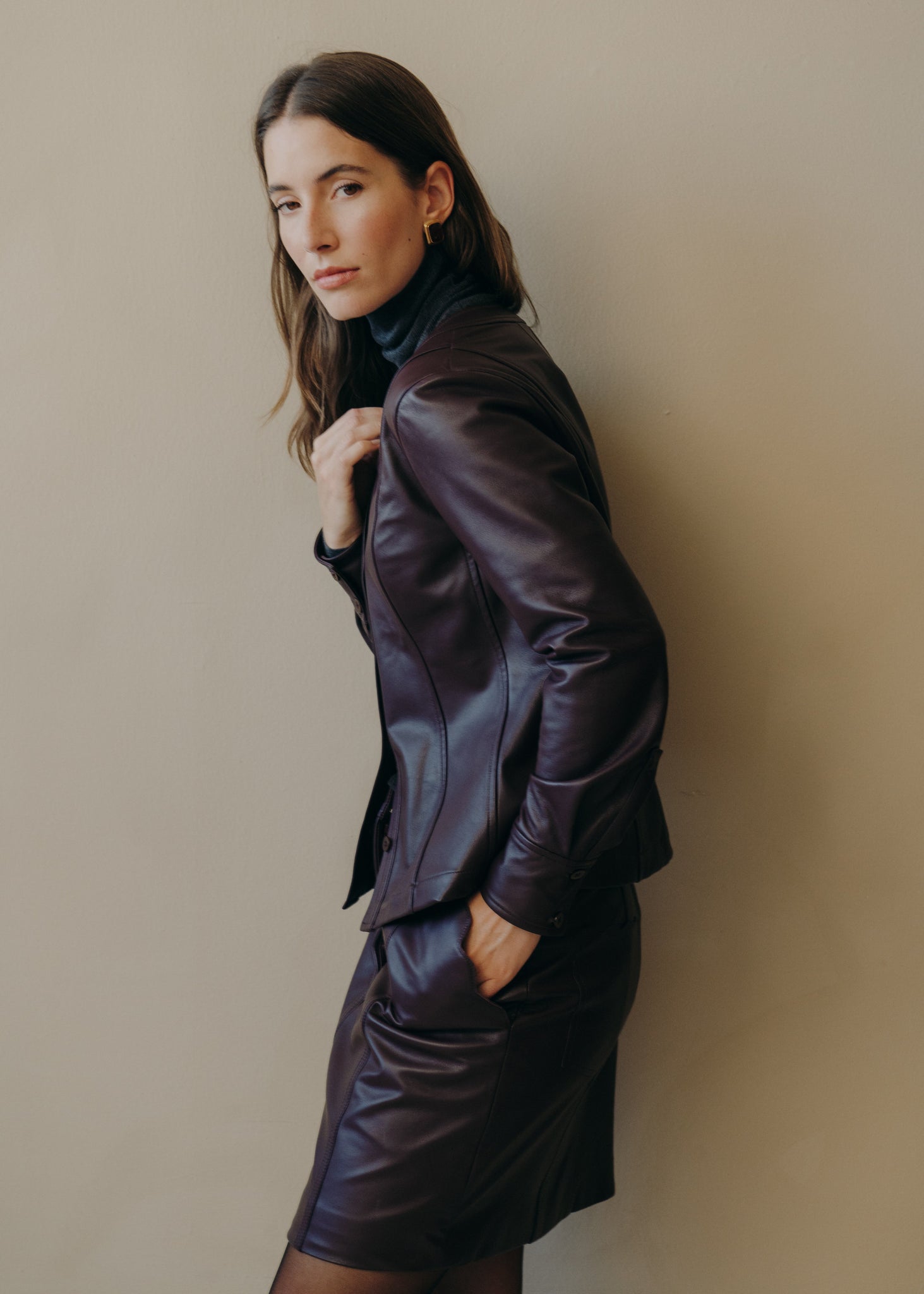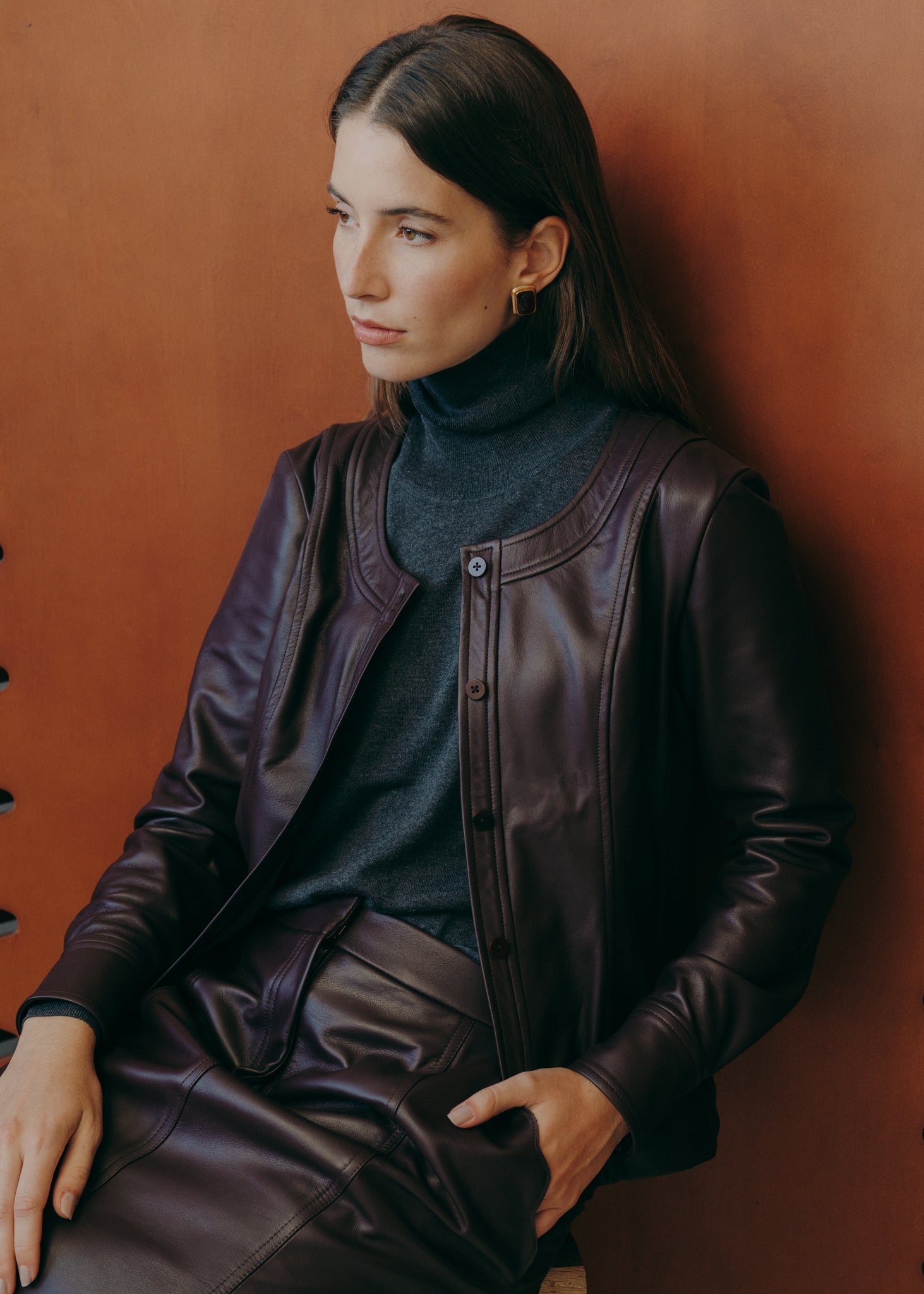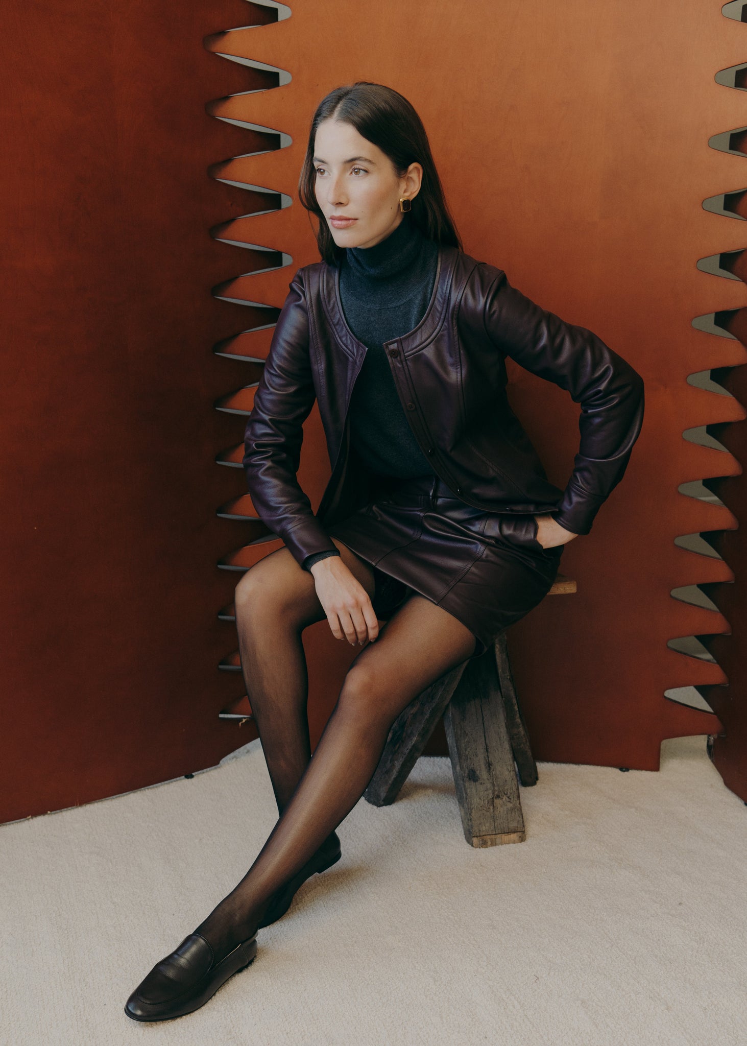 Paired with the Mini Sonia Skirt in matching oxblood lamb leather, it's an elevated basic that will be reached for time and again.